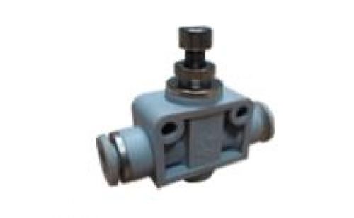 Reguladora de fluxo em linha com corpo plástico c/ fixação, para tubo Ø4mm à Ø12mm.