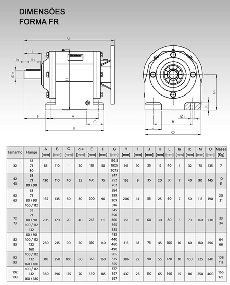 ser fixados por pés ou por flanges de saÃda. Consulte nosso catálogo e veja a