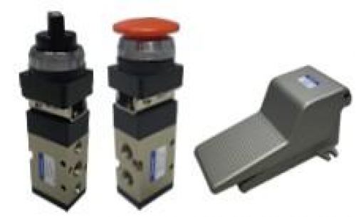 Válvula mecânica 3/2 vias, rosca 1/8", diversos acionamentos.