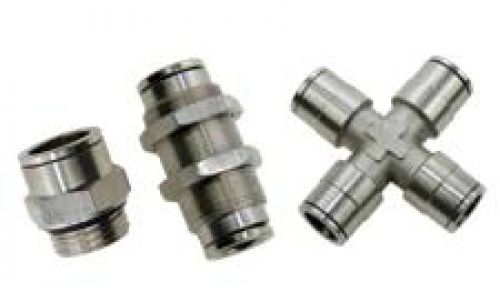 Conexões metálicas com engate rápido retas, cotovelos, "T", passa muro, etc.