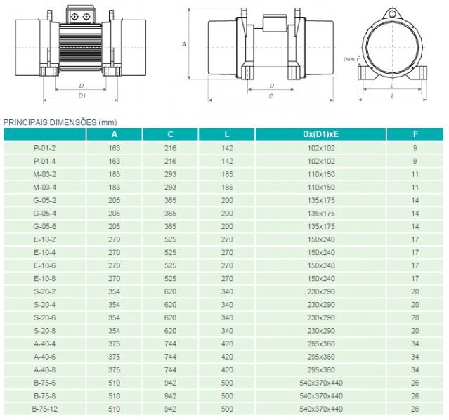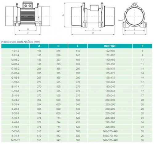 Motovibradores elétricos, para qualquer tipo de aplicação. DisponÃveis em vários tamanhos e varias potencias